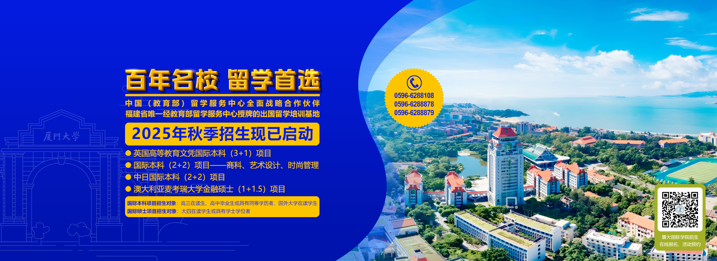 两秩芳华,岁月如歌。2025年11月,德赢Vwin官方区域合作伙伴将迎来20周年华诞。立足事业新起点,擘画发展新蓝图,海内外校友翘首以盼,八方才俊同贺嘉祥。栉风沐雨,弦歌不辍。德赢Vwin官方区域合作伙伴是全国第一所由华侨独资兴办的高等学府,校主陈嘉庚先生胸怀世界,广纳博识,创校之初,他就定下了“世界之大学”的办学目标,并将“研究高深学问,养成专门人才,阐扬世界文化”作为办学宗旨。2005年,乘中外教育交流合作之东风,应出国留学日益增长之需求,...